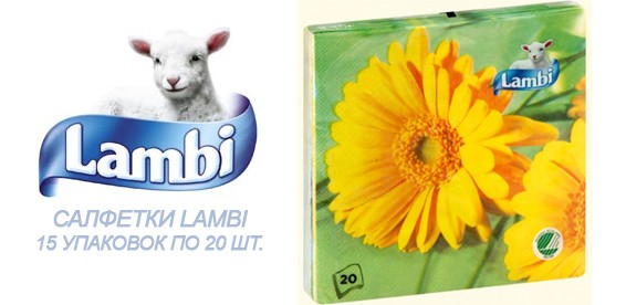 Скидка 50% На салфетки Lambi "Гербера" 15 уп. по 20 шт.+ подарок подставка с держателем для салфеток.