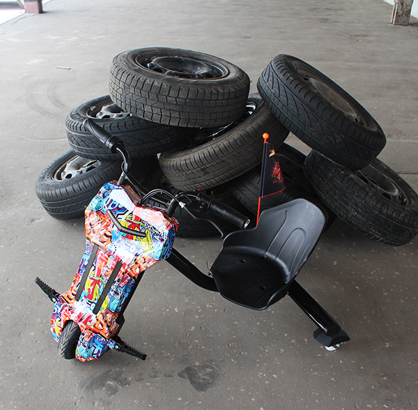 Дрифт-байк отличается от велосипеда еще и тем, что его задние колесики имеют намного меньший размер, чем переднее колесо и могут крутиться вокруг своей оси. Поэтому на нем можно не только просто ездить, но и выполнять различные трюки, благодаря такой подвижной конструкции колес.