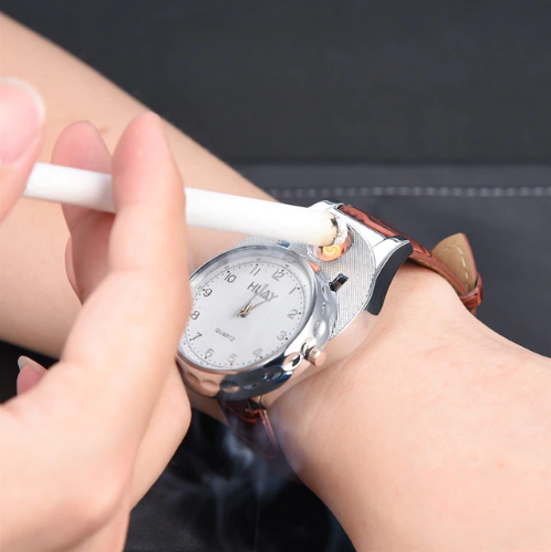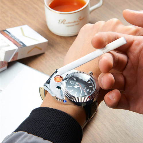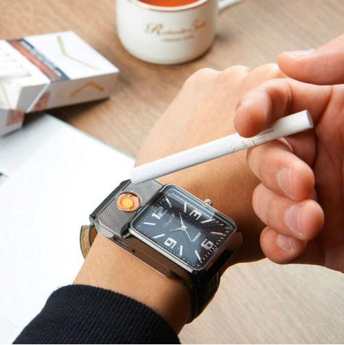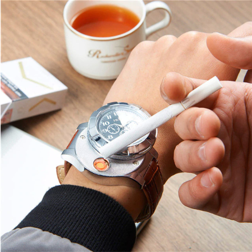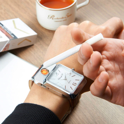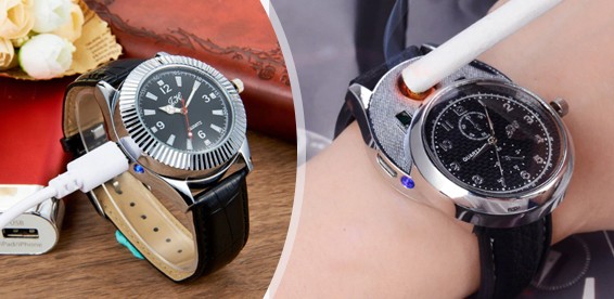 В последнее время в ассортименте многих магазинов Вы можете видеть рост популярности такого сегмента, как портативные USB зажигалки, работающие от встроенного аккумулятора. В большом многообразии данного вида товаров нам удалось найти для вас гаджет, который является не только USB зажигалкой, но и современным и стильным хронометром, выполненном в классическом корпусе круглых часов с аналоговыми стрелками. Мужские наручные часы-зажигалка - это удобное устройство 2 в 1, которое прекрасно подходит в качестве подарка для любого мужчины и на любой праздник. С данными часами больше не нужно носить зажигалку!