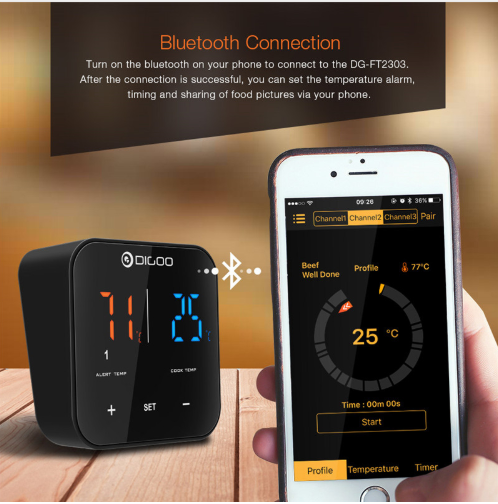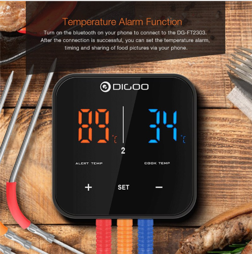Чувствуете ли вы разочарование, когда приглашаете друзей на барбекю, опасаясь, что мясо будет несколько сырым или скорее переваренным? У нас есть идеальное решение для вас! Кулинарный термометр Digoo DG-FT2303 c Bluetooth покажет вам, когда мясо будет готово.