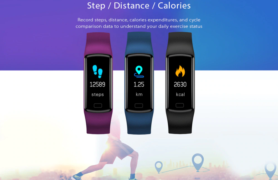 Функции:Время, будильник, дата, шагомер, измерение сердечного ритма, Смарт Браслет, пульт дистанционного управления камерой, сообщение, кислород крови