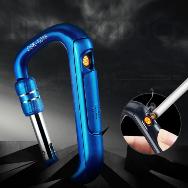 Удобная USB зажигалка-карабин. Материал: Металл