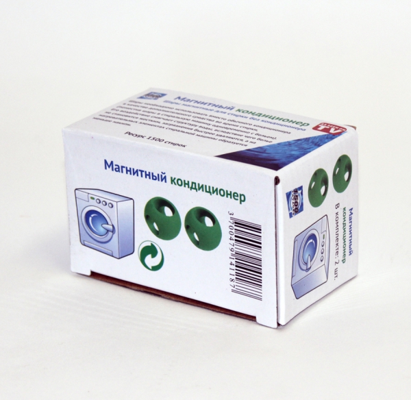 Описание Магнитный кондиционер для стирки - 100% натуральный экологически чистый продукт. Это инновационное средство для наиболее экономной и действенной стирки представляет собой шар, содержащий магниты в пластмассовом корпусе. Шар необходимо использовать вместо обычного кондиционера в качестве доп.средства во время стирки. Его действие смягчает текстуру воды, вследствие чего белье не становится жестким, загрязнения быстрее удаляются, а на нагревательных деталях стиральной машинки появляется меньше накипи. Принцип работы Под воздействием магнита происходит смягчение воды. Очевидно, нерастворимые соли, которые придают жесткость воде, никуда не пропадают. Однако магнит заменяет их кристаллическую структуру: кристаллы получают обтекаемый вид благодаря пространственной переориентации молекул. В итоге кристаллы соли никак не оседают на белье и не делают его твердым. Вам не потребуется применять хим.смягчитель воды. Магнитный кондиционер заменяет его на все 100%. Кристаллы соли не оседают и на нагревательных деталях, потому можно исключить из применения "Калгон" – лекарство для уменьшения накипи.