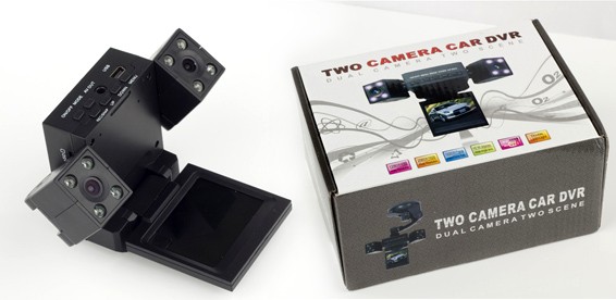Автомобильный видеорегистратор Two Camera Car Dvr с легкостью может быть установлен и в режиме реального времени позволяет осуществлять запись текущей дорожной ситуации перед автотранспортным средством, внутри салона и вокруг автомобиля в зависимости от того куда направлены камеры для съемки. ИК подсветка, в модели Two Camera Car Dvr, позволяет вести запись при недостаточном освещении на расстоянии до 10 метров. Two Camera Car Dvr оснащен микрофоном, расположенным на лицевой панели, что обеспечивает качественную аудиозапись в направлении видеосъемки. Также Two Camera Car Dvr оснащен дисплеем для оперативного просмотра записанных видео роликов, встроенными ик-светодиодами, по 4 штуки на каждой камере, для ночной сьемки.