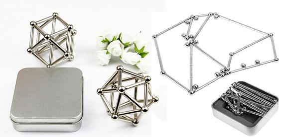 Конструктор состоит из магнитных стержней и стальных шариков.
