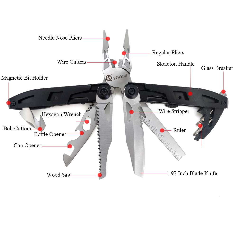 Спроектирован так, что при полном раскрытии ручки инструмента поворачиваются внутренней стороной наружу для большего удобства пользования. Он изготовлен из прочной стали и способен выдерживать значительные нагрузки.