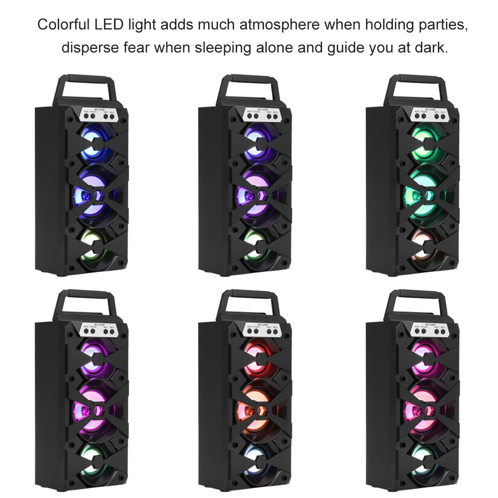 BT speaker отлично подходит для активного отдыха. 8 Вт громкоговоритель, динамик обеспечивает кристально чистое качество звука при прослушивании музыки. USB порт и TF карта слот предоставляет вам больше способов наслаждаться музыкой. Цветовые Светодиодный Фонари добавляют атмосферу на вечеринках, рассейте свои страхи, когда будете спать в одиночестве, можно использовать как ночник.