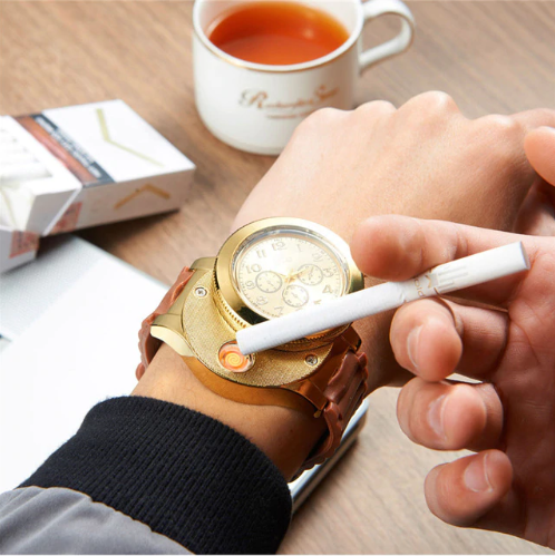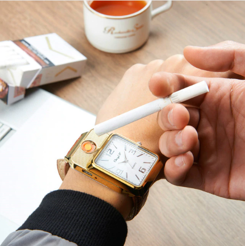 В последнее время в ассортименте многих магазинов Вы можете видеть рост популярности такого сегмента, как портативные USB зажигалки, работающие от встроенного аккумулятора. В большом многообразии данного вида товаров нам удалось найти для вас гаджет, который является не только USB зажигалкой, но и современным и стильным хронометром, выполненном в классическом корпусе круглых часов с аналоговыми стрелками. Мужские наручные часы-зажигалка - это удобное устройство 2 в 1, которое прекрасно подходит в качестве подарка для любого мужчины и на любой праздник. С данными часами больше не нужно носить зажигалку!