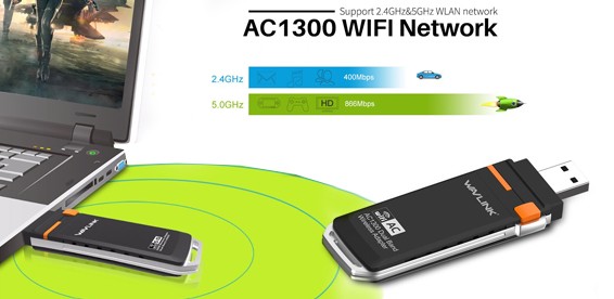 Беспроводной USB-адаптер Wavlink AC1300 Wi-Fi (2,4 ГГц, 5 ГГц ) Купон за 390 р. + доплата 1390 р. вместо 3900 р., скидка 54%. |