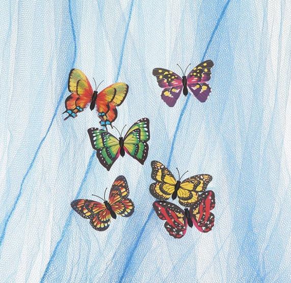 В комплект входят 20 бабочек различных расцветок.