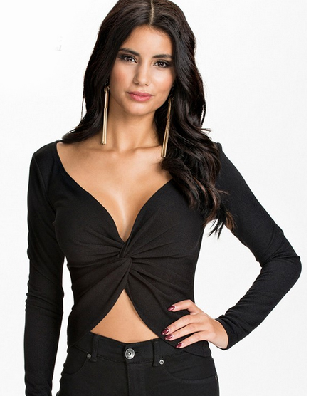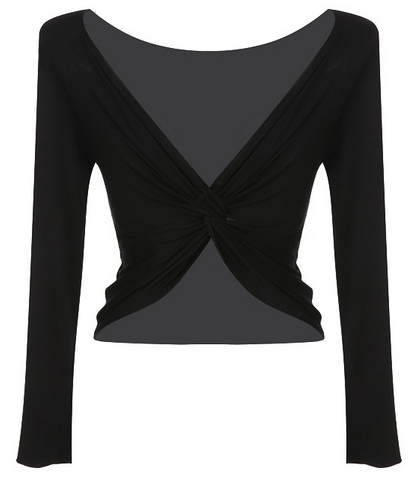 Трикотажная блузка с драпировкой в области груди. Сексуальный обтягивающий силуэт и открытый живот. Прекрасно подойдёт на каждый день и на праздничное мероприятие.