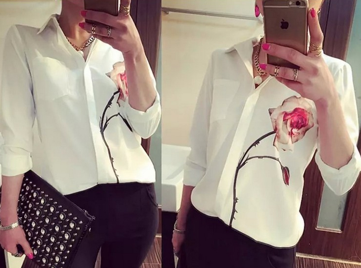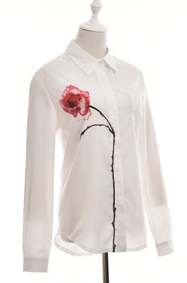 Стильная блузка с асимметричным принтом "Роза". Оригинальный дизайн и удобный крой - идеальный выбор на каждый день.