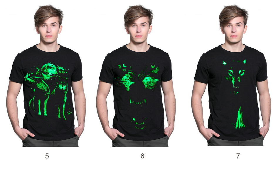 Футболка со светящимся рисунком в темноте - прекрасный подарок на любой праздник. Она выполнена из трикотажа и имеет стильный рисунок.