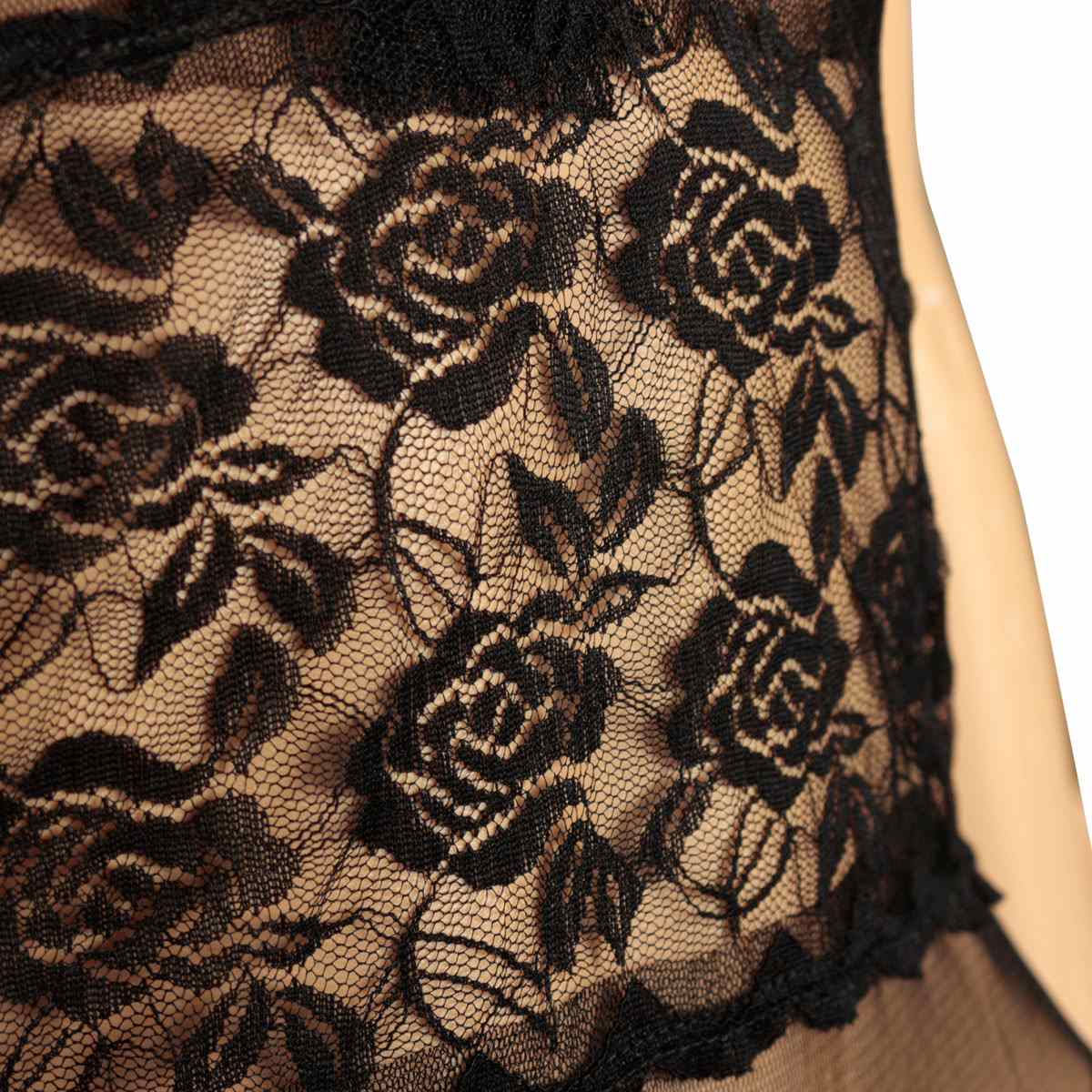 Выполнен из мягкого кружева и полиэстера.