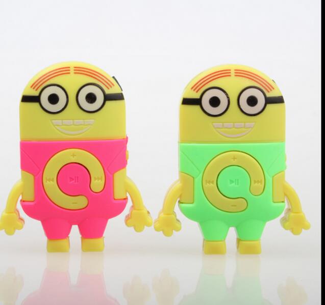 Весёлые MP3 плееры Миньоны из знаменитого мультика. Работает на MicroSD/TF флешках (картах памяти). Заряжается от mini USB. Одной зарядки хватает до 5 часов прослушивания музыки. Множество ярких и прикольных расцветок. Плеер настолько мал, что его можно повесить на брелок для ключей. На mp3 плеере Миньон есть такие кнопки как плей/пауза, регулятор громкости и переключение треков (песен). Стандартный вход для наушников 3.5мм