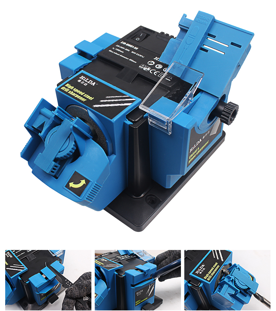 Универсальная портативная электрическая точилка применяется для заточки сверл диаметром от 3 до 13 мм, зубил, лезвий размером от 6 до 51 мм, а также ножей и ножниц. Диск диаметром 56 мм имеет напыление из материала карборунд, что обеспечивает его износостойкость. Модель проста и удобна в эксплуатации, не требует специального технического обслуживания. Защитный экран позволяет визуально контролировать выполнение операции, а также оберегает оператора от вылета искр. Наличие специальных отверстий в основании устройства позволяет крепить аппарат к поверхности.