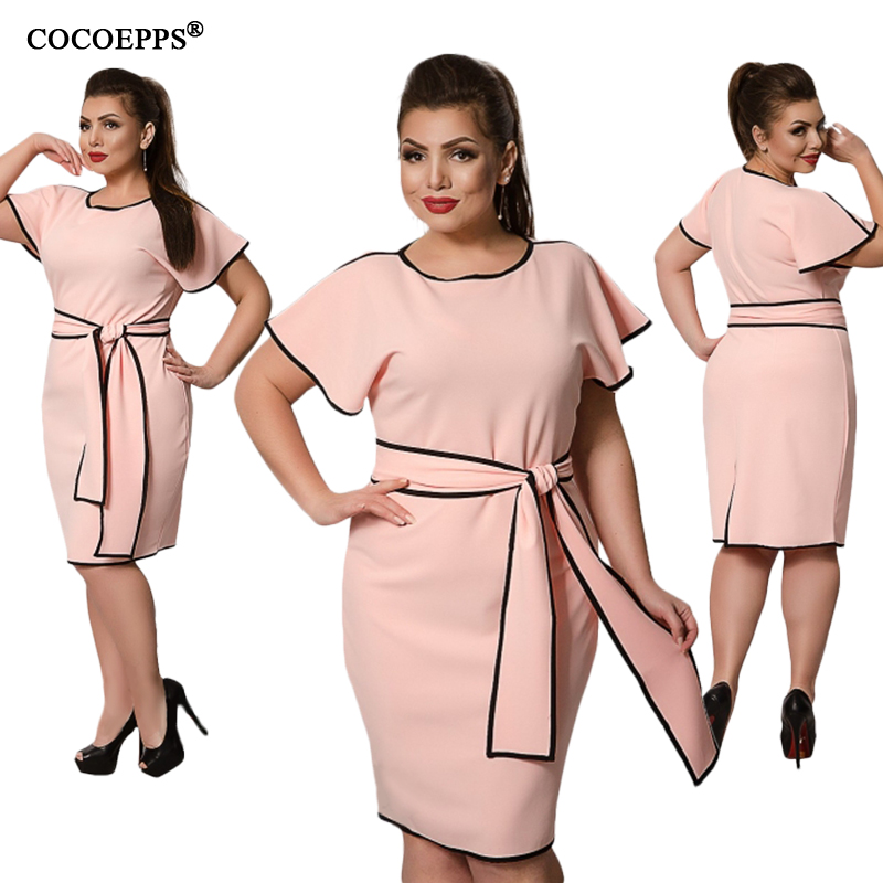Элегатное летнее платье с поясом (размеры L - 6XL)