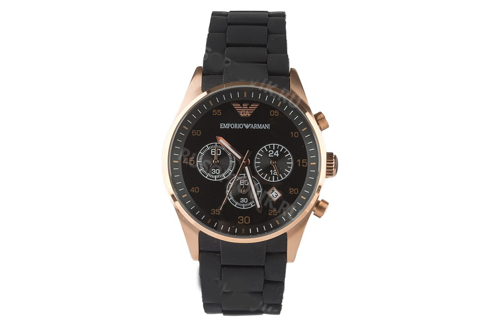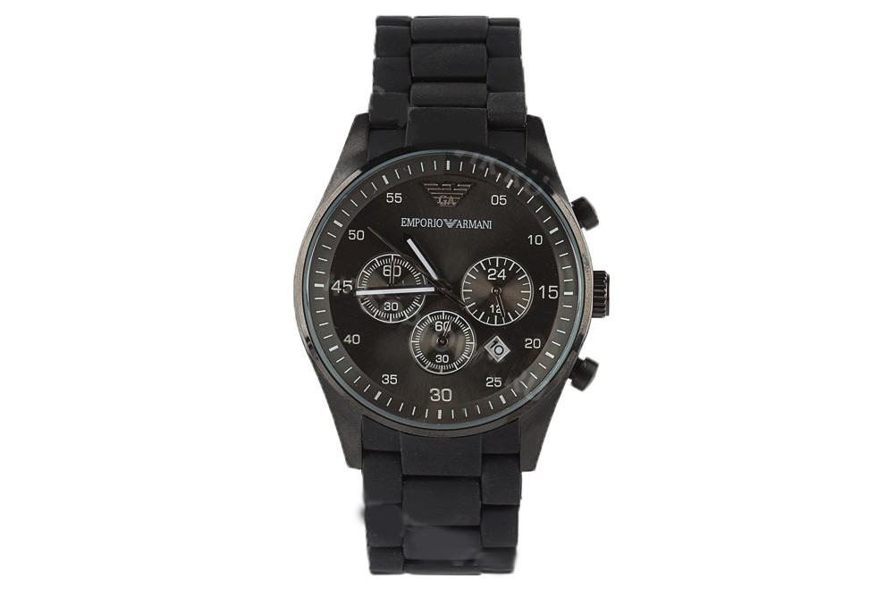 Хит продаж – идеальная реплика часов Emporio Armani. Корпус выполнен из литого металлического сплава, браслет покрыт матовым полиуретаном, наощупь похож на силикон. Циферблат соответствует оригиналу, хронограф работает, дата переключается во время. Механизм кварцевый, стекло каленое, управление одной заводной головкой, на которой есть фирменная гравировка. Застежка «Бабочка» надежно фиксирует браслет на запястье.