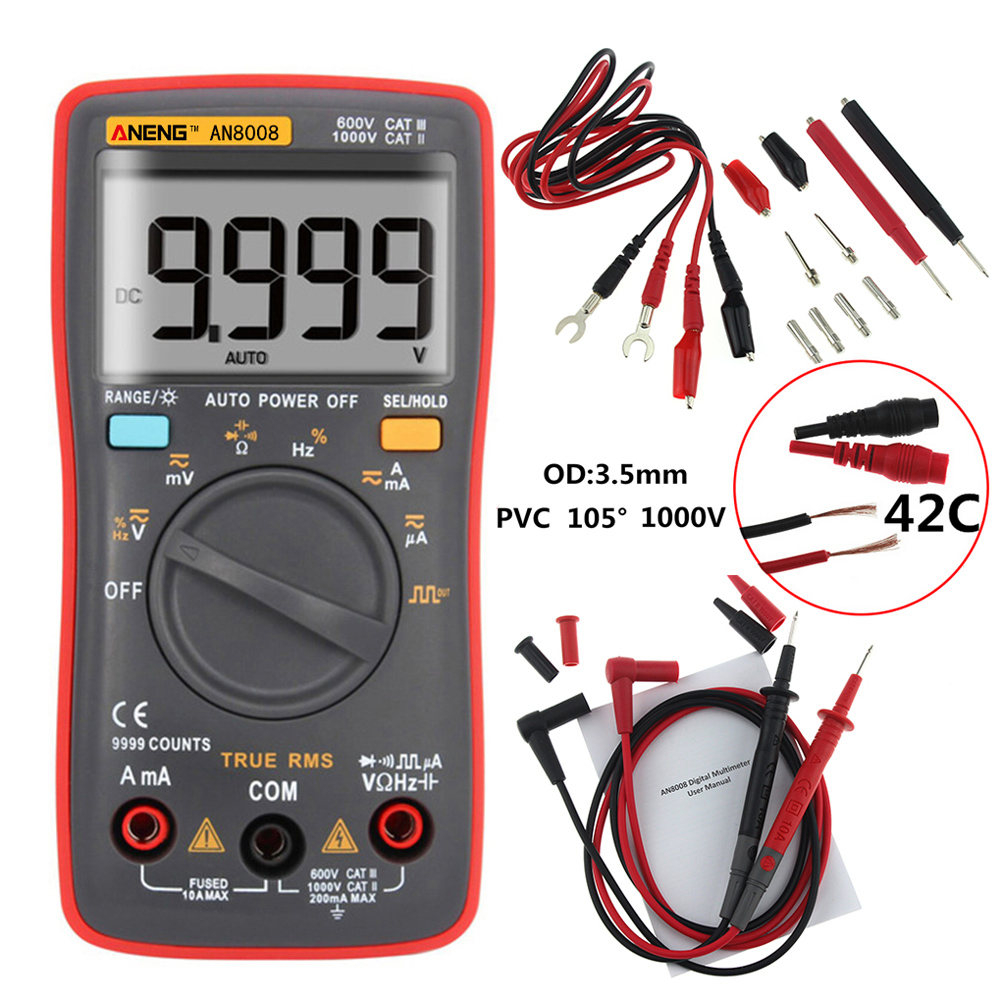 * Переменный ток: 0.01uA к 9.999A